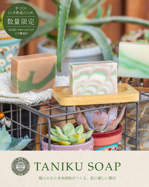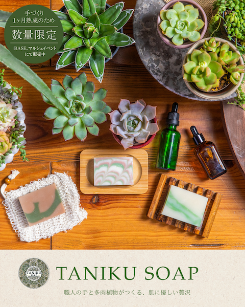 多肉植物の恵みをぎゅっと詰め込んだ、手づくり石けん「TANIKUSOAP」です。